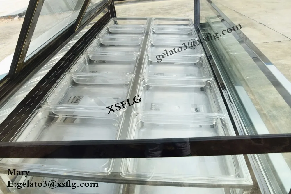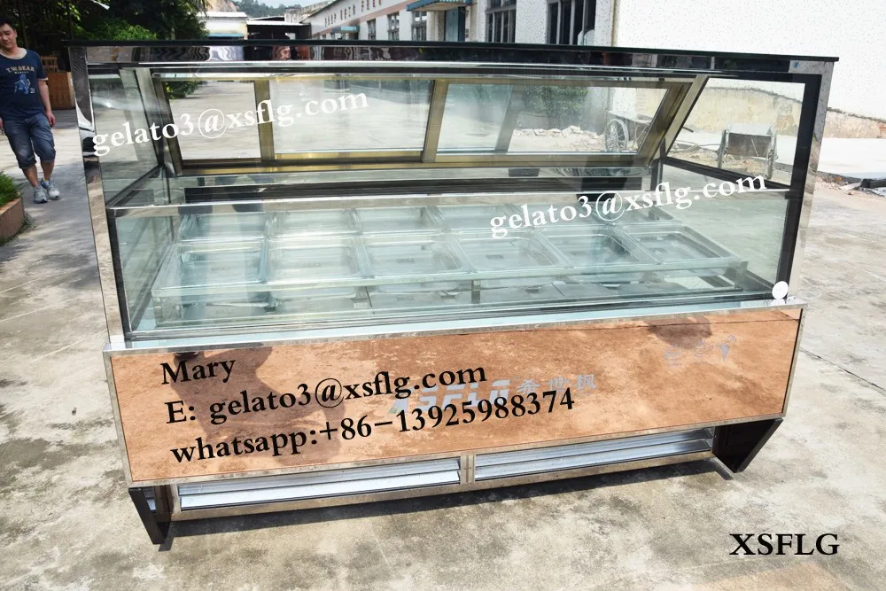 6.One ice cream showcase with 12 flavors,14 flavors,16 flavors,18 flavors,20 flavors or even more flavor as option can be customized for clients.